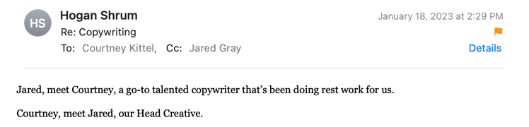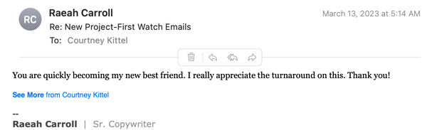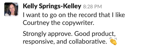 This isn’t a side hustle. I am a trained copywriter with 8 years of real work experience. Aside from my B.A. in Arts & Letters and minor in English, I was mentored by copywriting and marketing extraordinaire, Alex Cattoni.