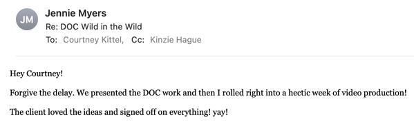 “Working with Courtney has been an absolute dream. Not only did she bring new and innovative ideas to the table, her laser focus proved that we met deadlines in a timely and productive manner. She is a true workhorse who is as dependable as she is hilarious. I wholeheartedly endorse her professional prowess!”